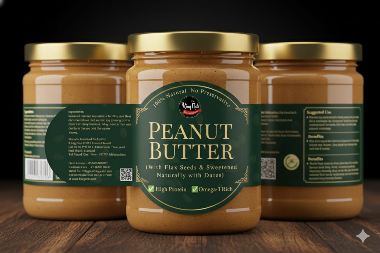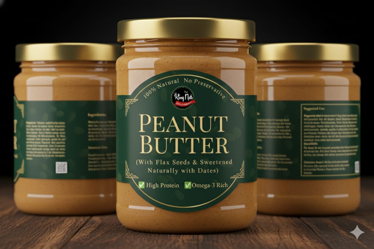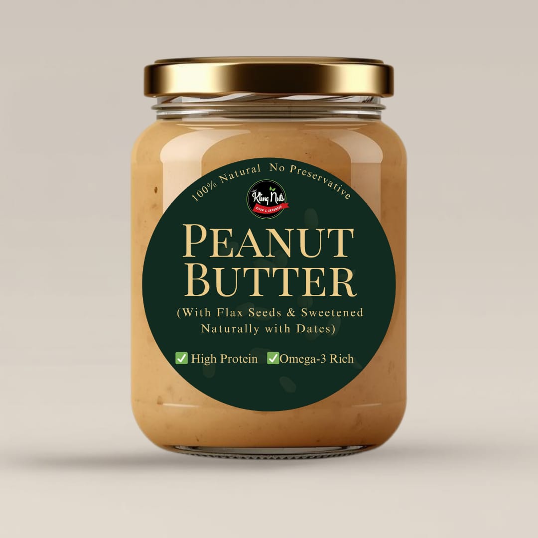 Creamy, protein-packed peanut butter with roasted peanuts, flax seeds, and dates. Rich in Omega-3 and fiber, 100% preservative-free, handcrafted for wholesome daily energy.